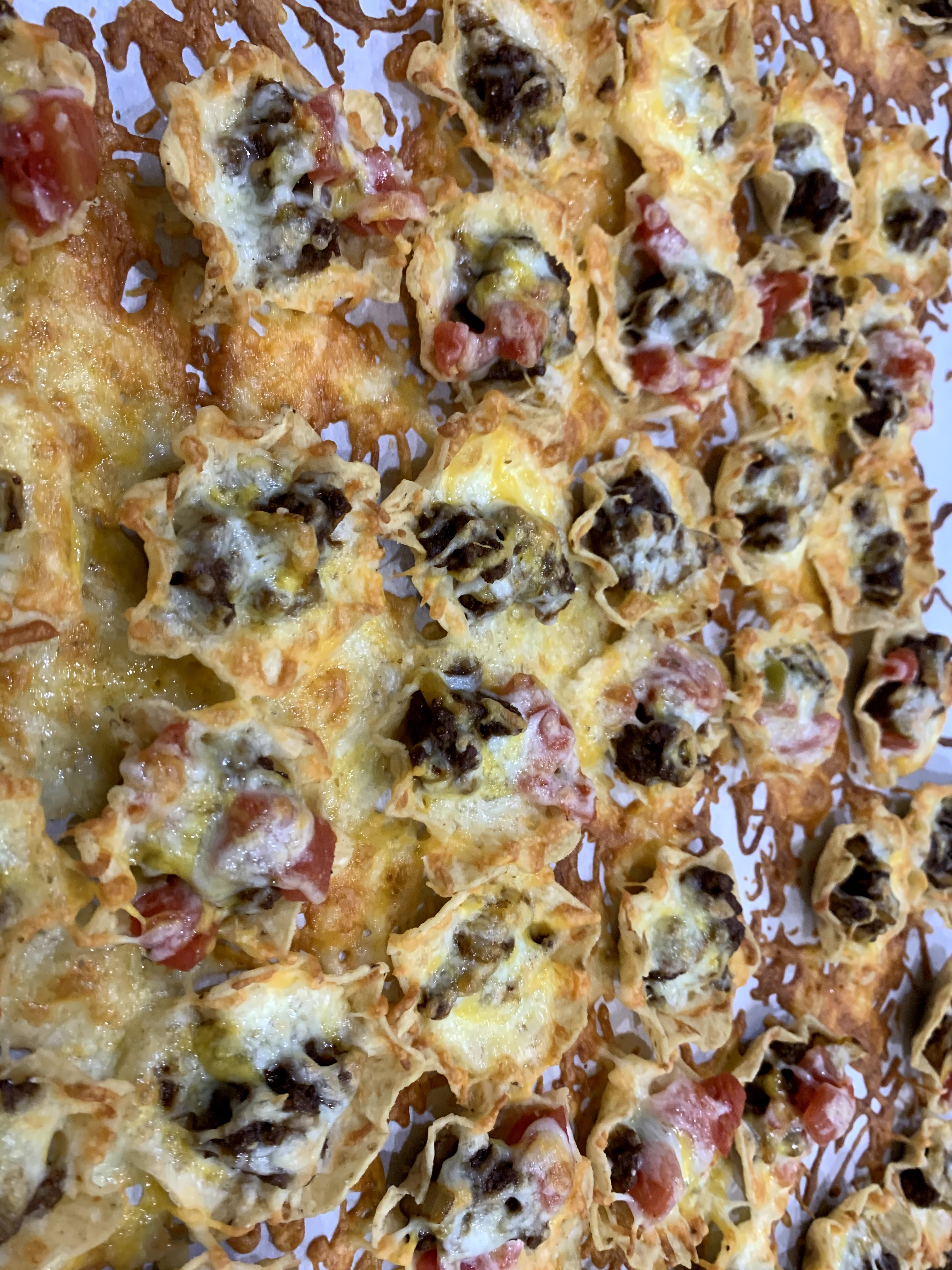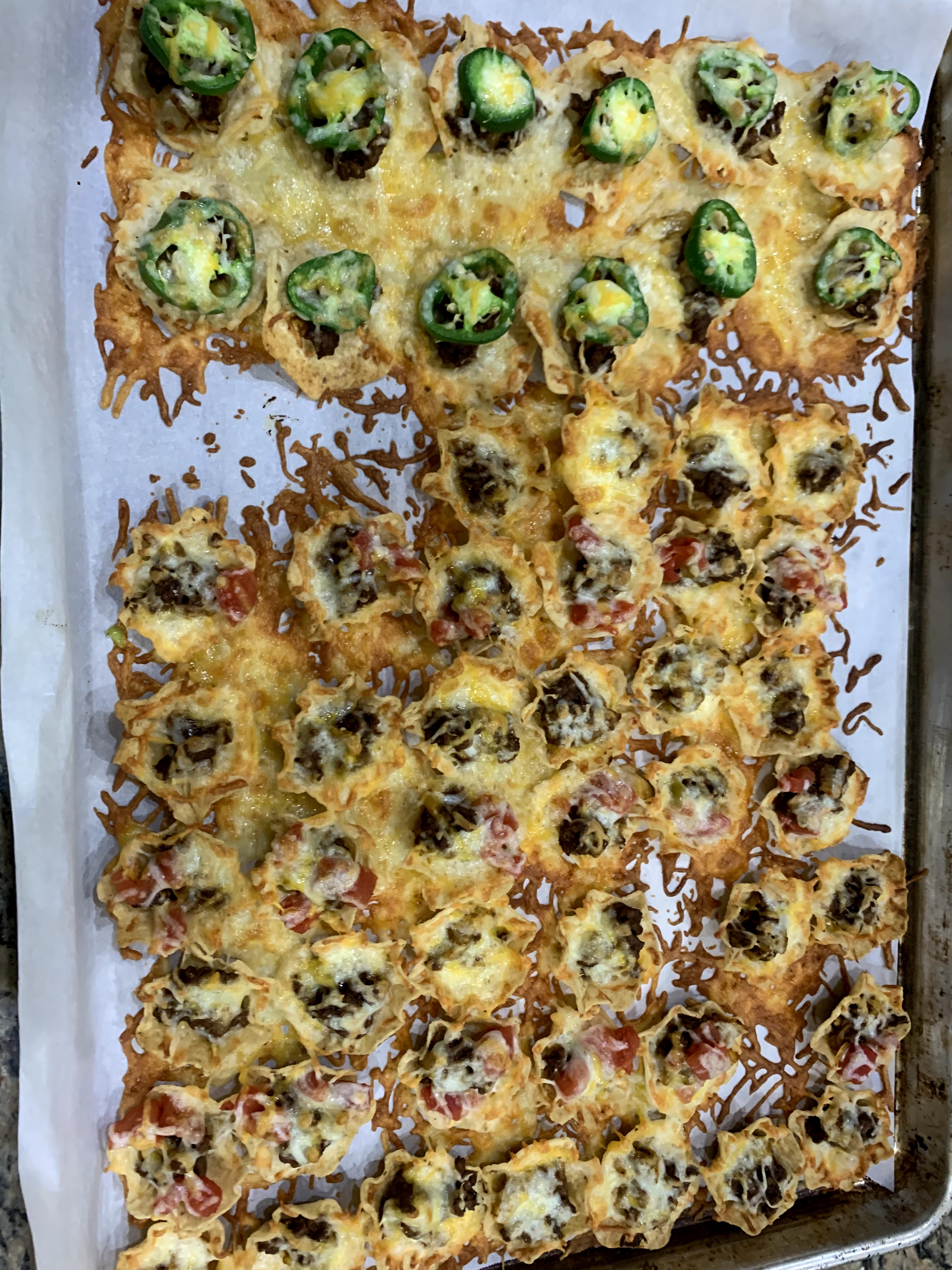 You can also take that “burnt cheese” (no idea why I feel the need to put that in quotations) and use it as crackers to dip into the left over meat mixture. This makes a very good KETO friendly option for those of your guests who may need a low-carb option (there are you happy Julye).