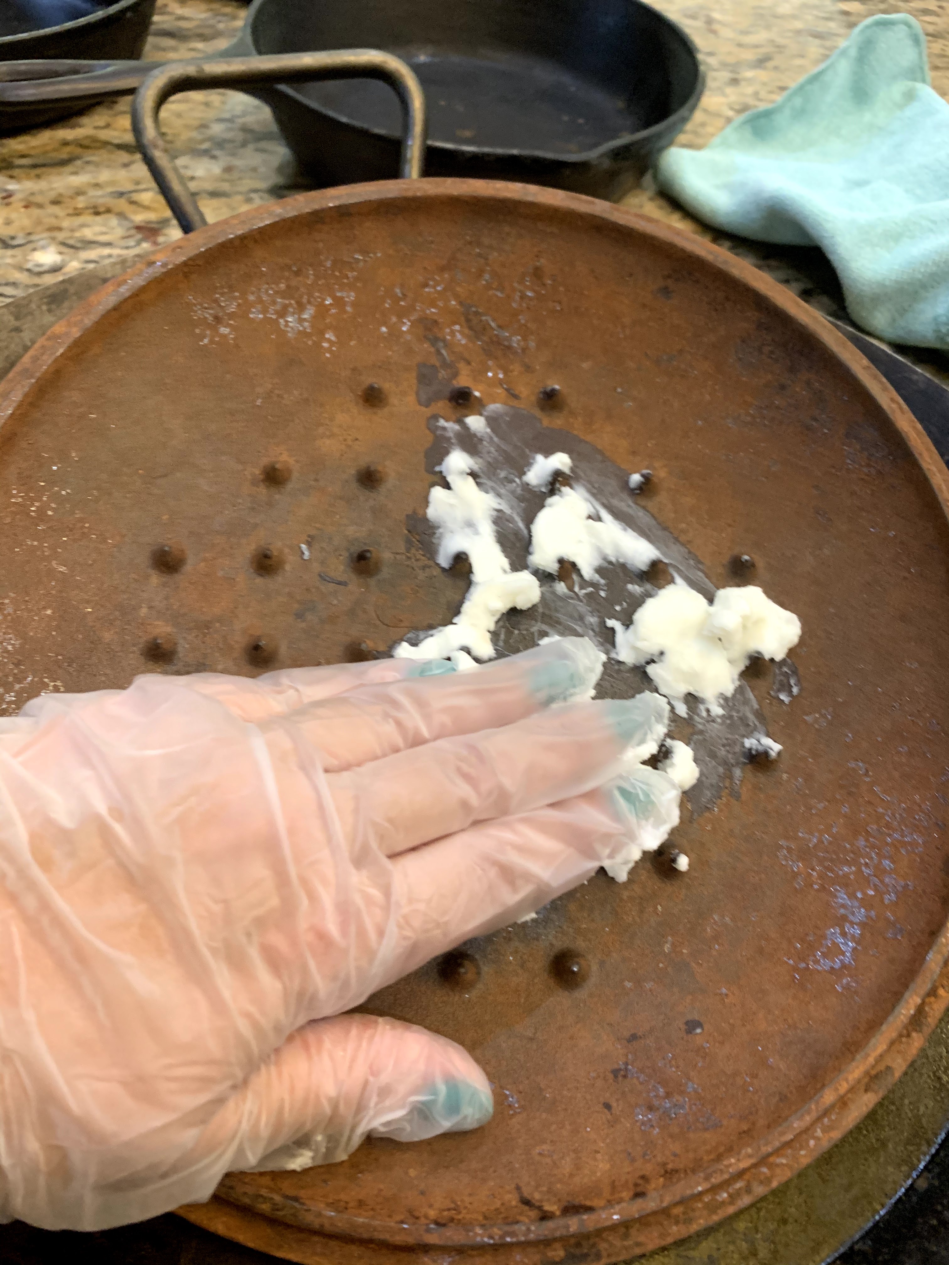 The last step is to add a thin layer of oil or Crisco to the cast iron to protect it.